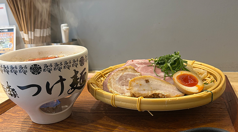 つけ汁はコンロ式の陶器に入っており、最後まで冷めない工夫がされています。濃厚な魚介の旨みとコクがあり、太麺との相性も良く、満足度の高い一杯でした。